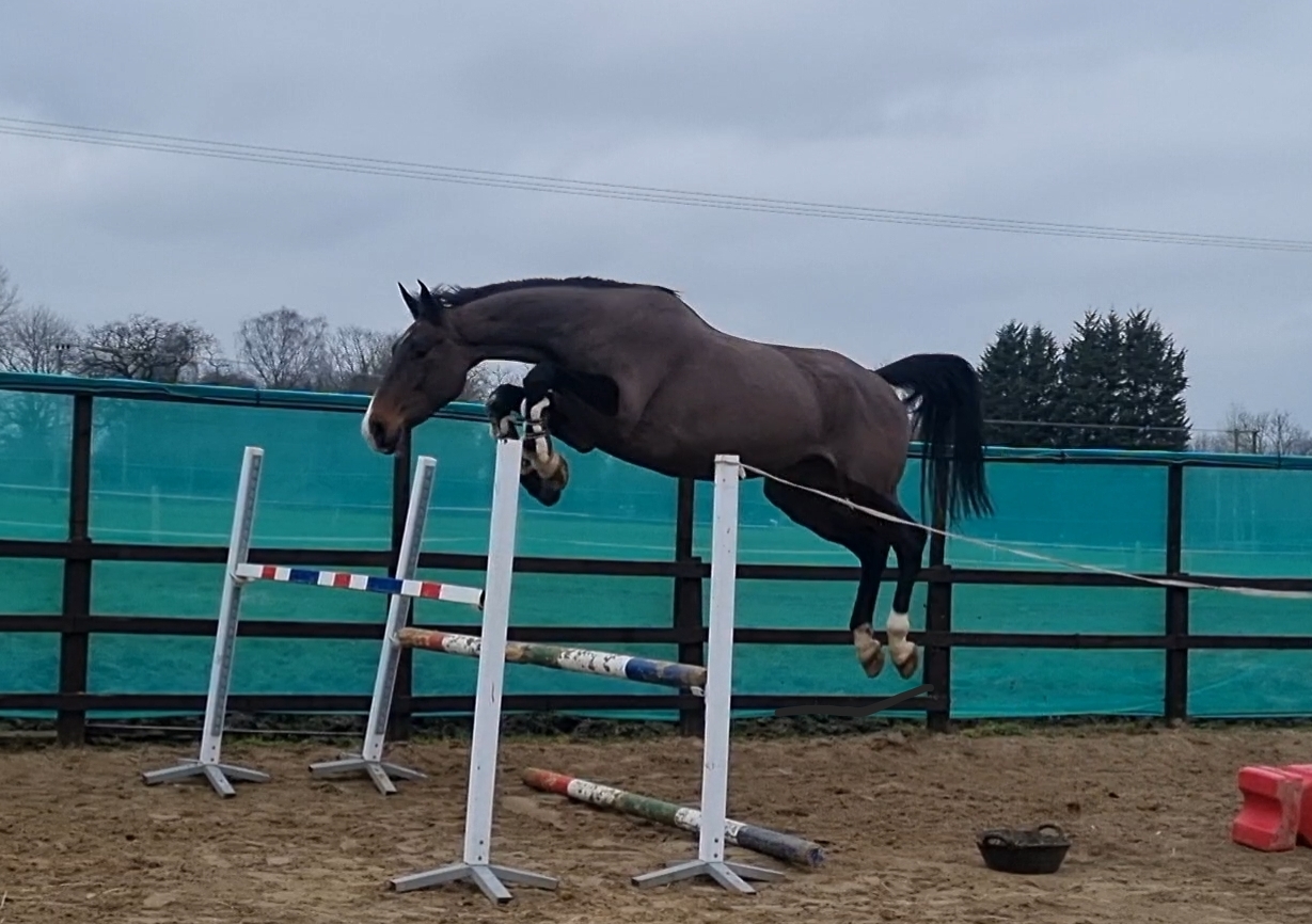 A level headed nature, straight and correct with good xrays she would be an ideal candidate to produce for the sport. Scopey mare, careful jumper with a very good brain.